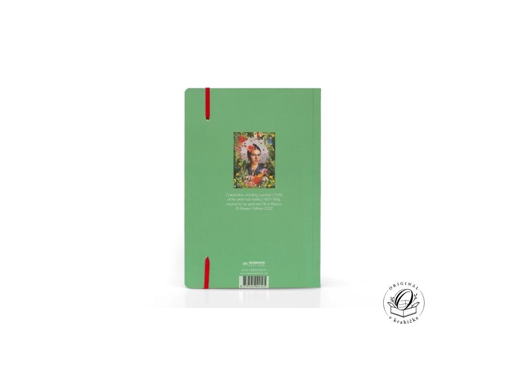 Zápisník inšpirovaný Fridou Kahlo: formát A5 v mäkkej väzbe. Hmotnosť: 200 g. Vyrobený v Holandsku. Museum Editions by Lanzfeld.