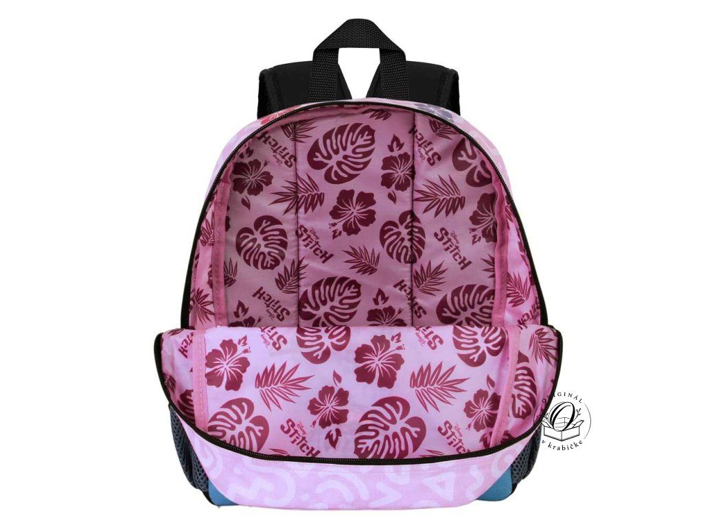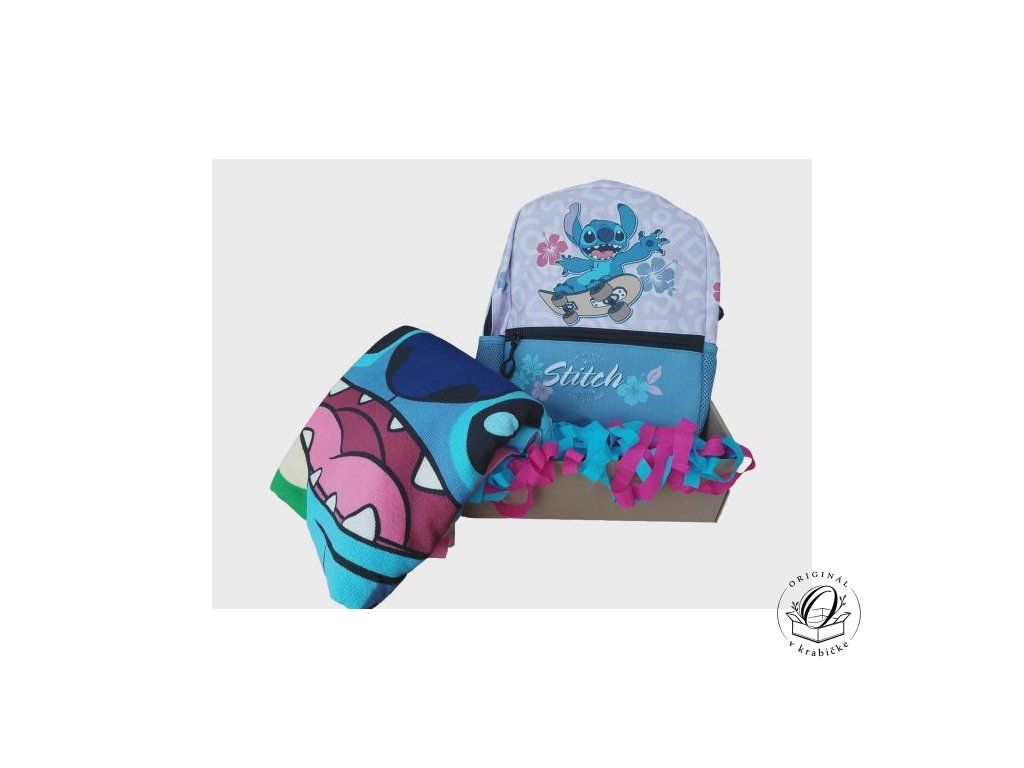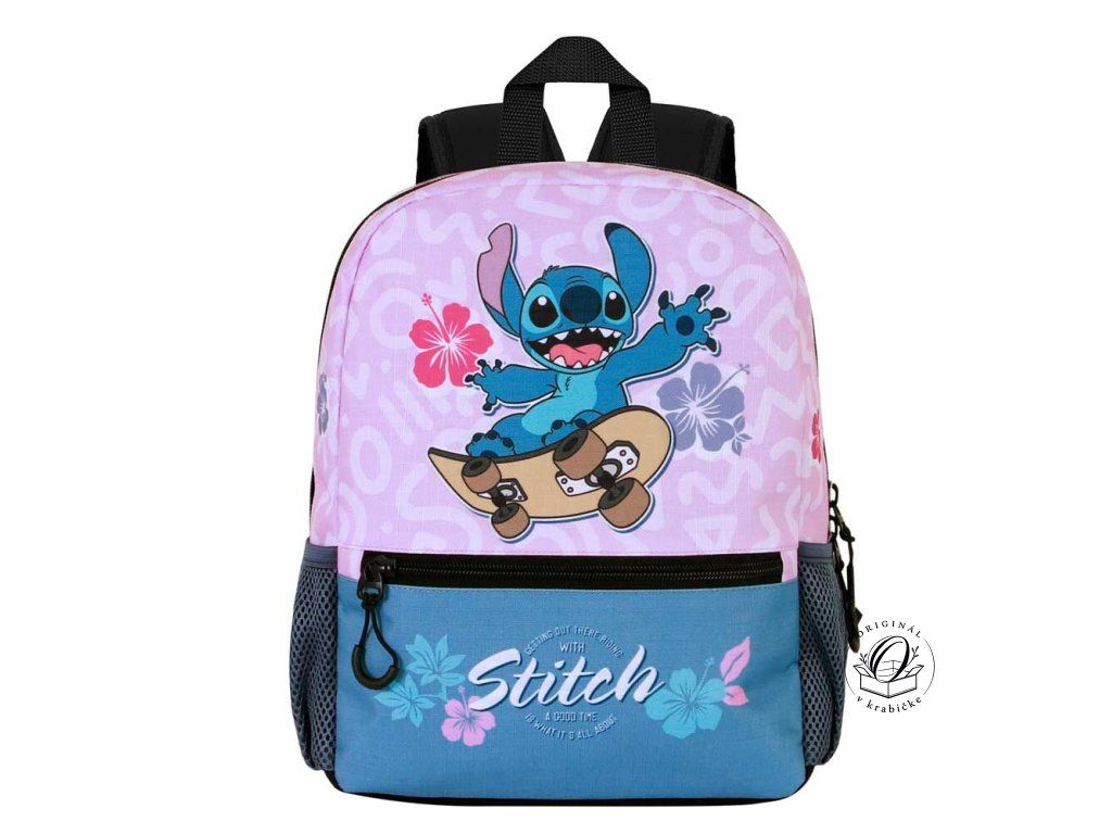 - Štýlový ruksak Stitch so skejtom: Ideálny na prenášanie osušky, hračiek alebo desiaty. Má nastaviteľné popruhy, takže výborne sedí na každom chrbte. 🎒