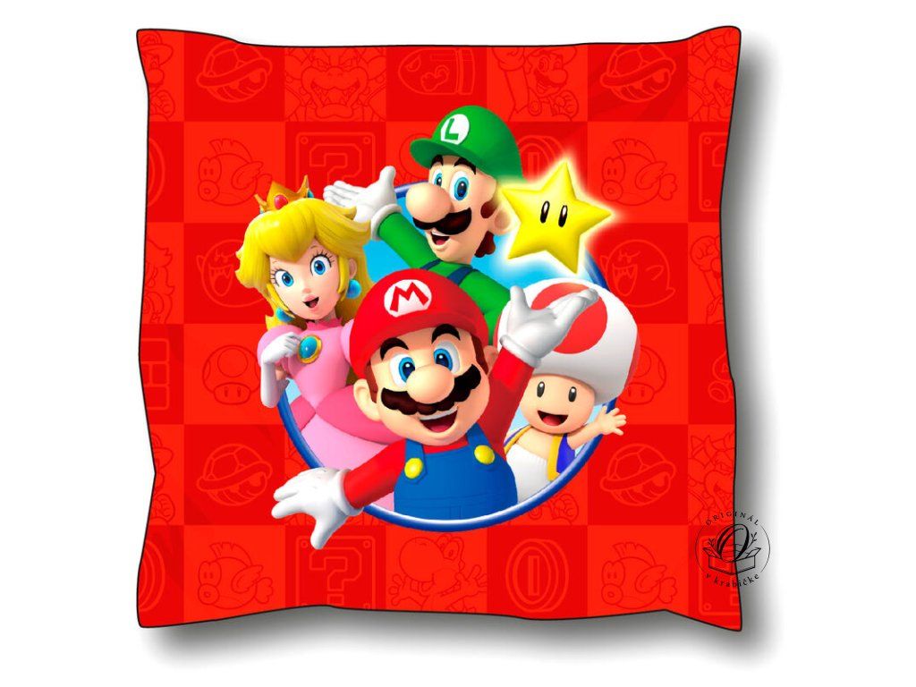 - Mäkučký vankúš Super Mario Bros (40 x 40 cm): Žiarivo červený vankúš s ikonickým logom, ktorý premení každú detskú posteľ alebo hrací kútik na kráľovstvo Mario Bros. Je vyrobený z príjemného materiálu, ideálny na oddych po náročnom leveli.