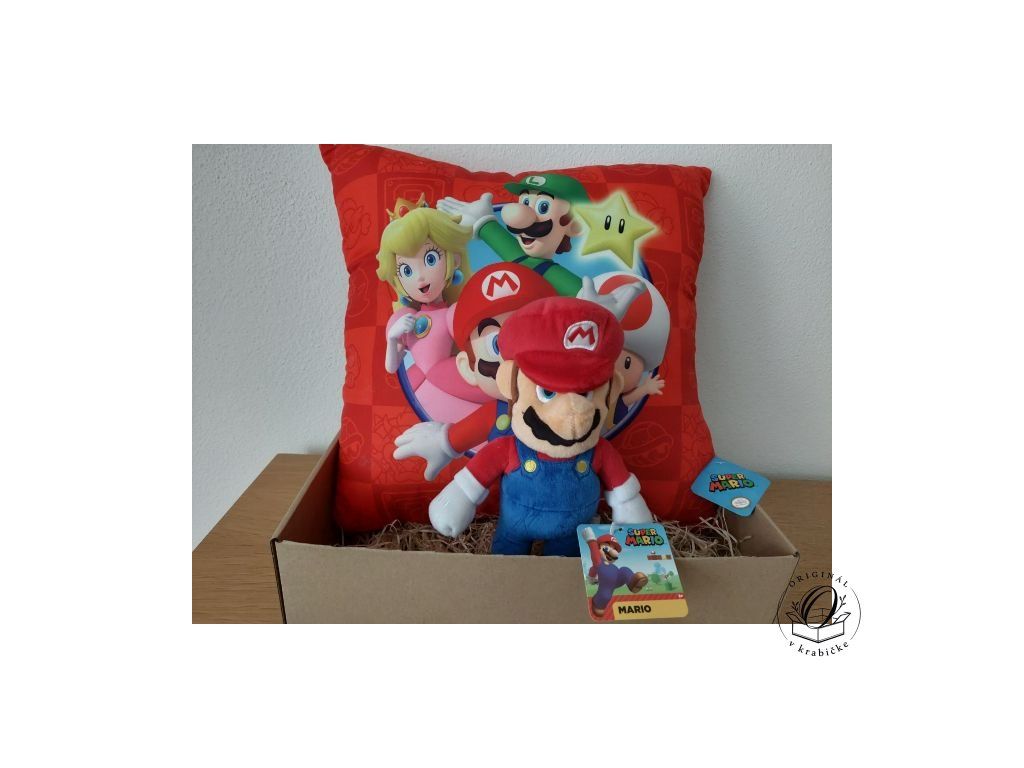 Super Mario set: Plyšová figúrka Mario 23 cm + Vankúš 40x40 cm